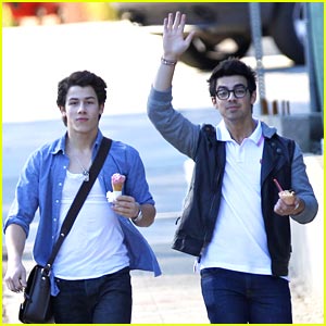 Antes de partir de Los Angeles, Joe Jonas y su peque hermano, Nick, se detienen para disfrutar un rico cono de helado el miércoles 10 de febrero por la tarde.
