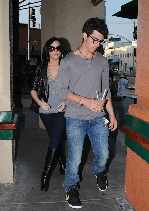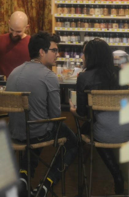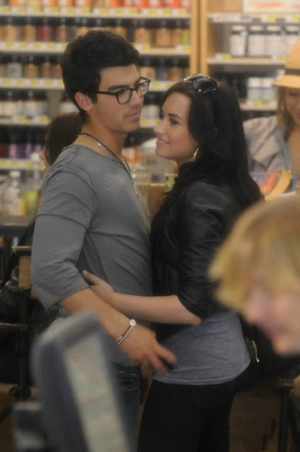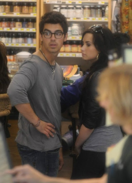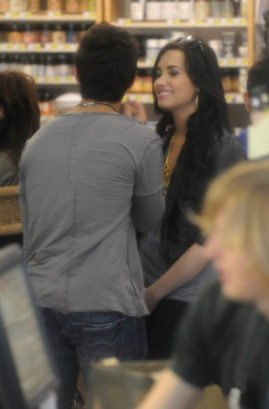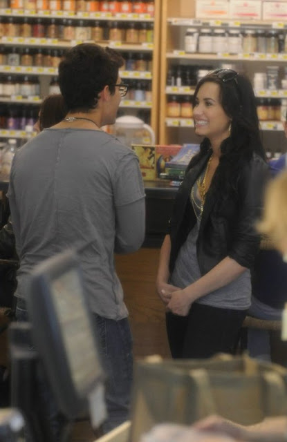 Joe Jonas y su novia en-y-fuera de la pantalla, Demi Lovato, se ponen risueños, mientras se disponen a recoger un par de cosas en la tienda de comestibles Erewhon Foods en Hollywood el sábado por la tarde (3 de abril).